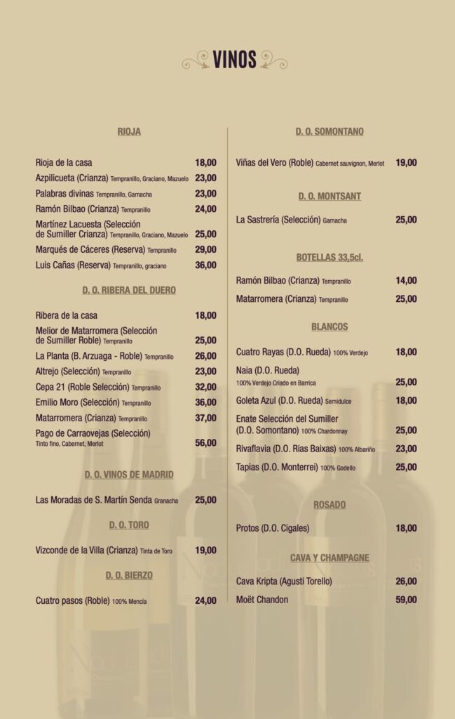 Carta de Vinos